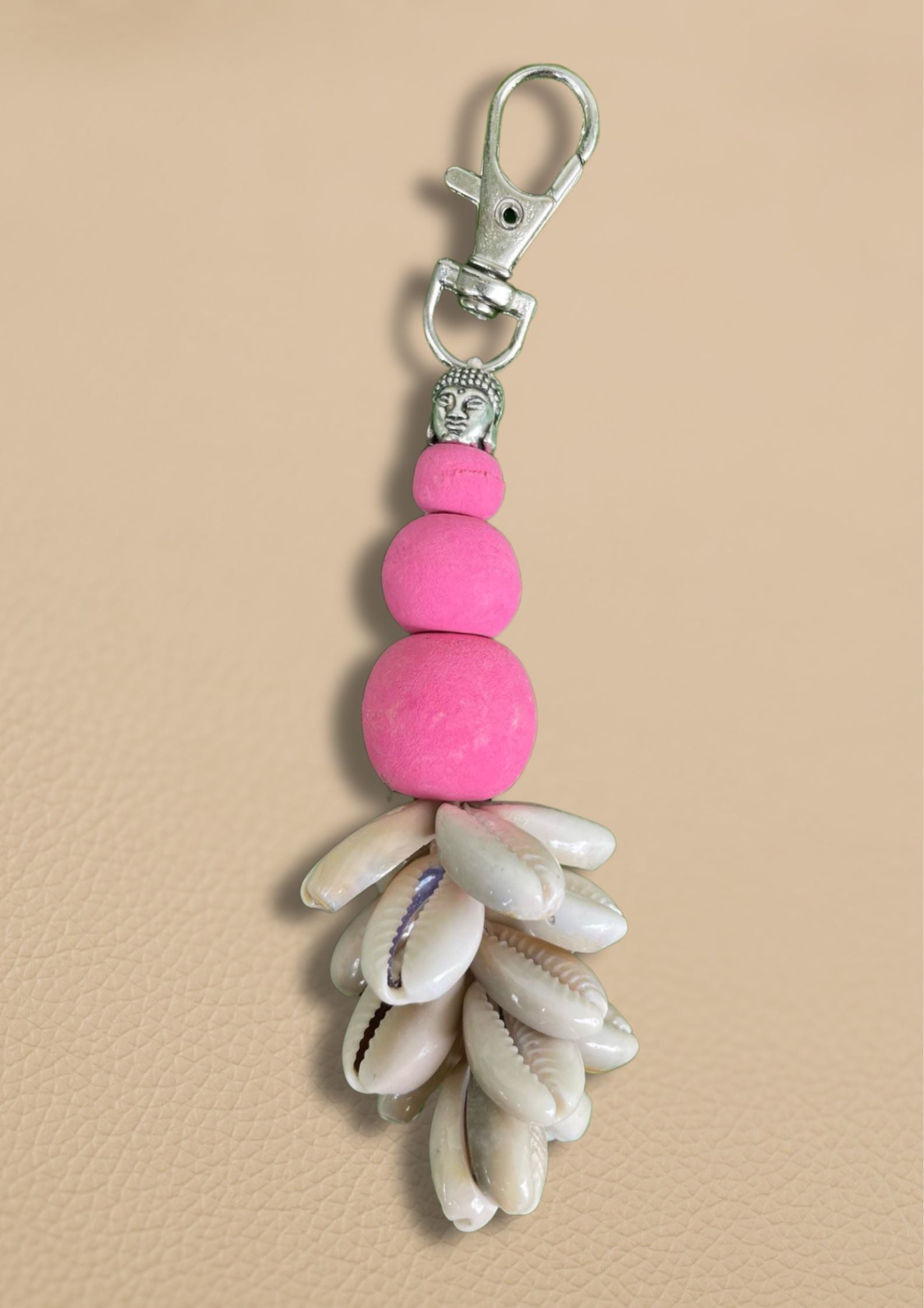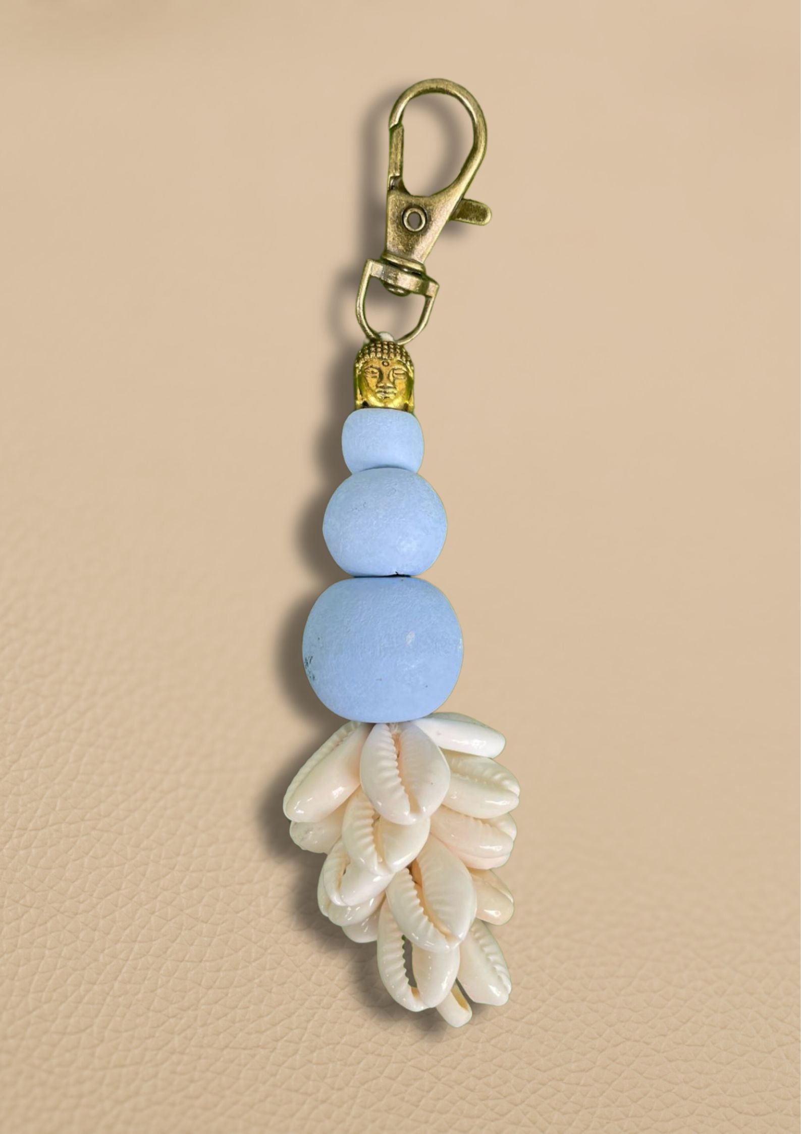 Le design raffiné de cet accessoire évoque l’harmonie et la paix intérieure, tout en ajoutant une touche d’exotisme et de sophistication à votre sac à main. Les coquillages, minutieusement sélectionnés, apportent une texture naturelle et un éclat unique, tandis que la tête de Bouddha, symbole de sagesse et de sérénité, complète l'ensemble avec élégance.