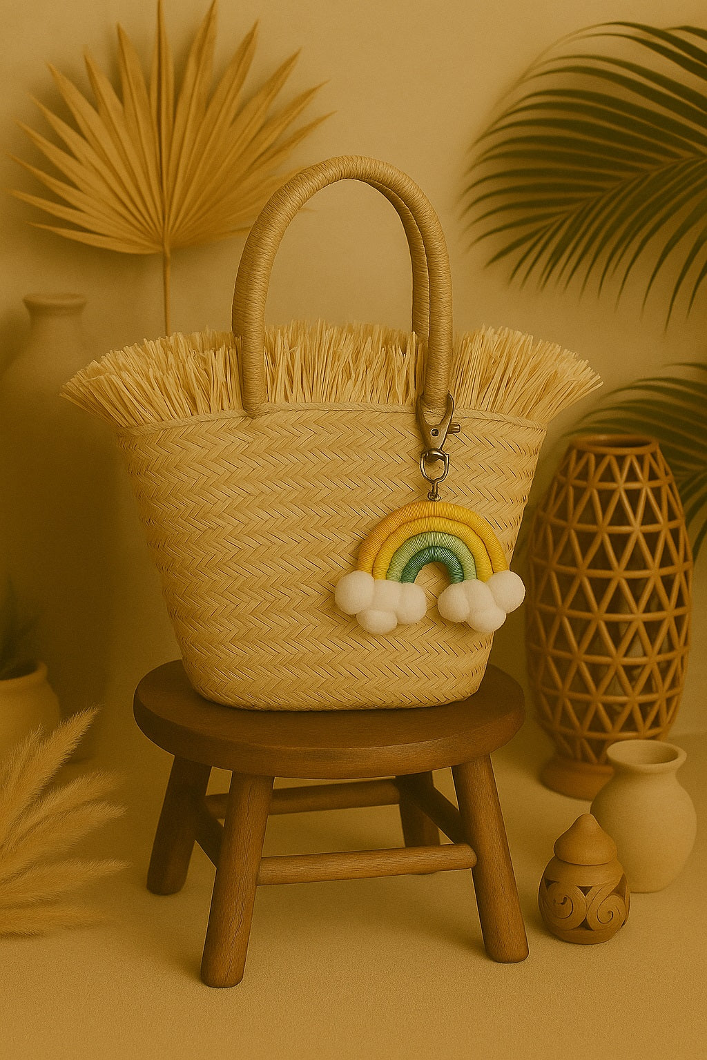 Apportez une touche de lumière et de couleur à votre sac à main avec cet accessoire unique en son genre. Confectionné à la main à Bali par des artisans locaux, cet arc-en-ciel tissé allie tradition et modernité, et fait de chaque sac un véritable chef-d'œuvre de savoir-faire.